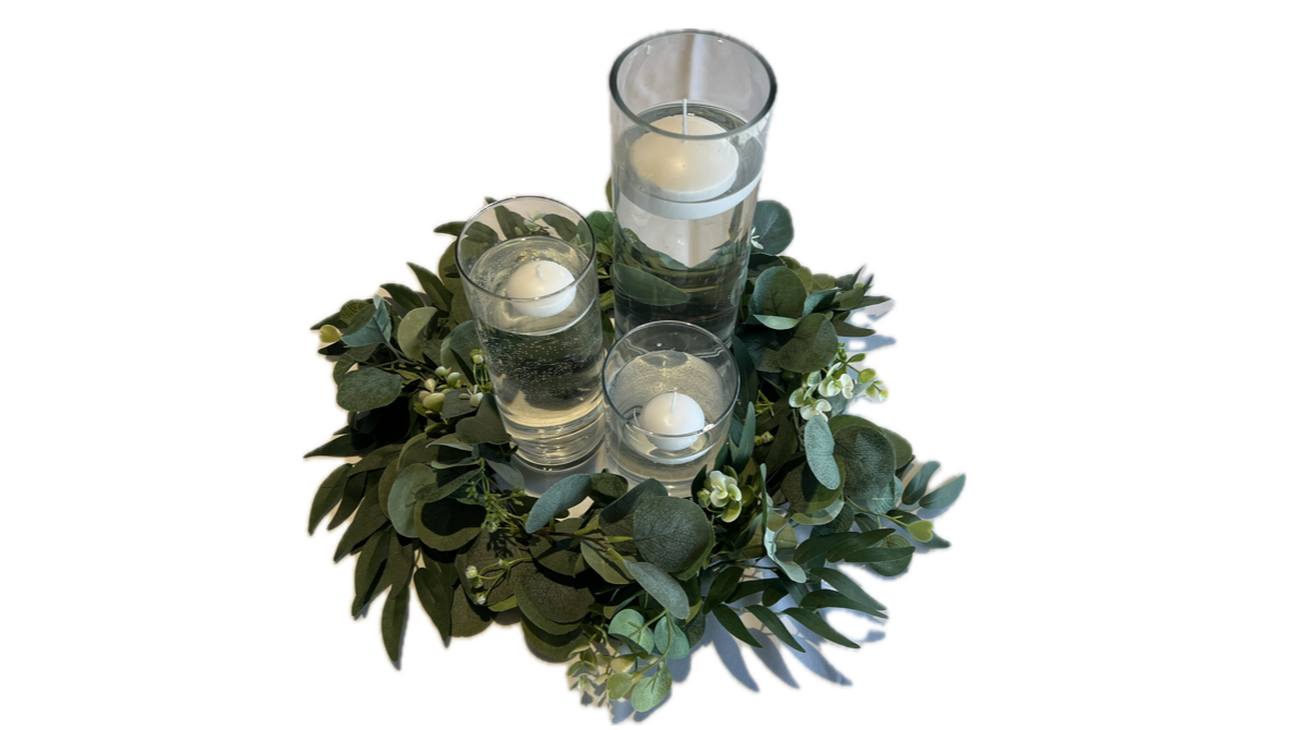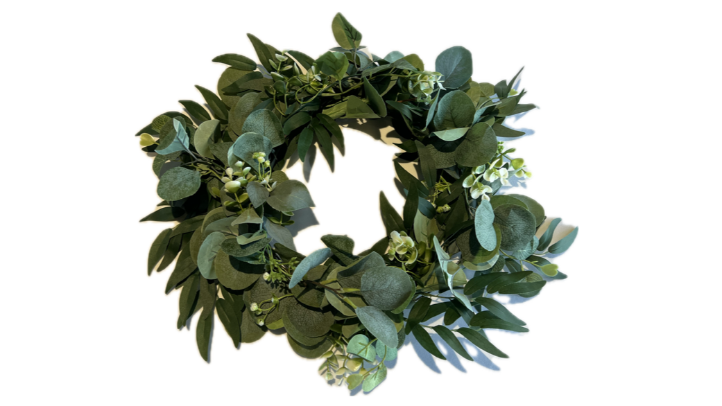 FAUX GREENERY RINGby March 5, 2026March 13, 2026 Previous Next FAUX GREENERY RING $12.5 / Price Add Item Inside ring is 7.5" Ring width is 15.5" Height ranges from 2.5-4.5" Height 3.5" Width 15.5"