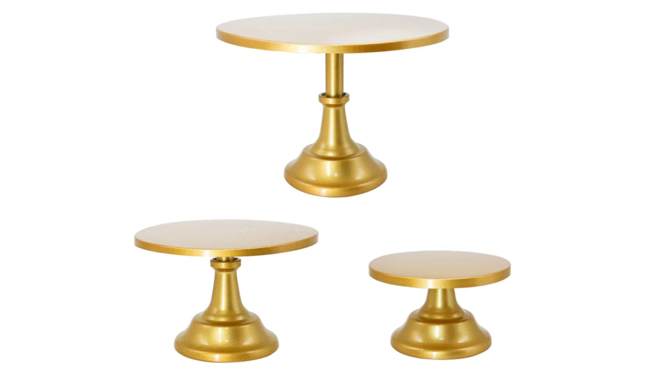 GOLD CAKE STAND, LARGEby January 12, 2026January 14, 2026 Previous Next GOLD CAKE STAND, LARGE $9.25 / Price Add ItemTags:CAKE SERVER, CAKE STANDS, SERVING & DISPLAY Height 11" Width 12"