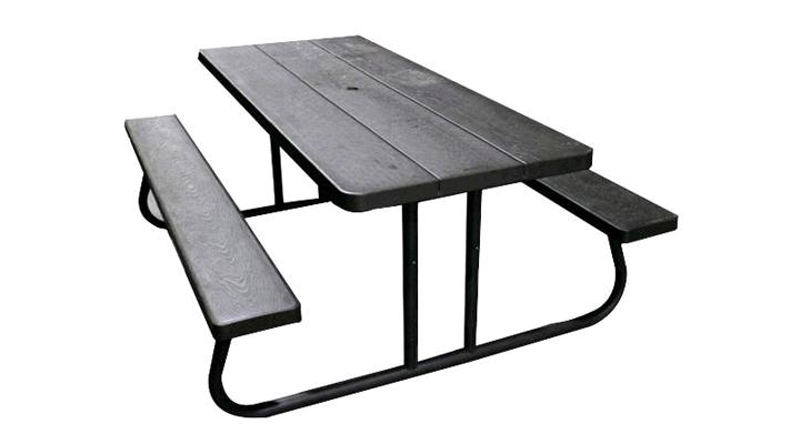 Picnic Table Bench Set, Folding GREY Plastic w/ Metal Frame and Umbrella Hole (72″ x 57″ x 30″H)
